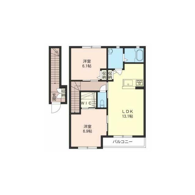 | 間取り | 2LDK(LDK13.1帖 洋室6.1帖 洋室6.9帖) | 主要採光面 | 南 |