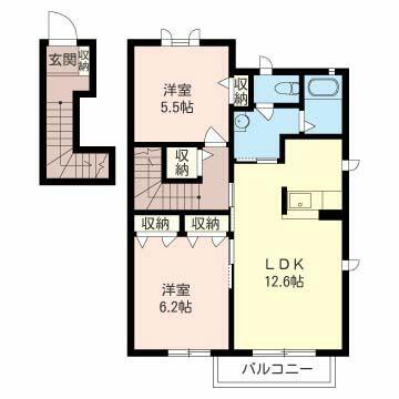 | 間取り | 2LDK(LDK12.6帖 洋室6.2帖 洋室5.5帖) | 主要採光面 | 南 |