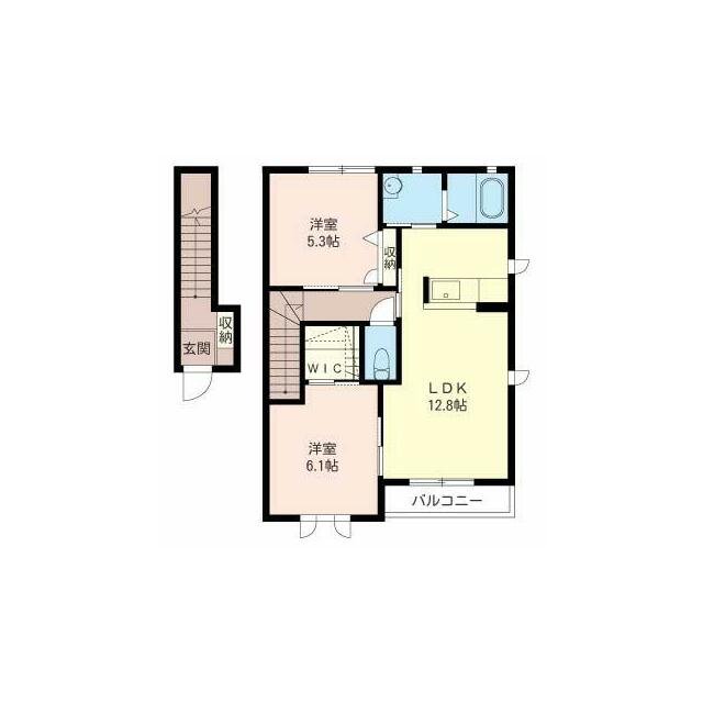 | 間取り | 2LDK(LDK12.8帖 洋室6.1帖 洋室5.3帖) | 主要採光面 | 南 |