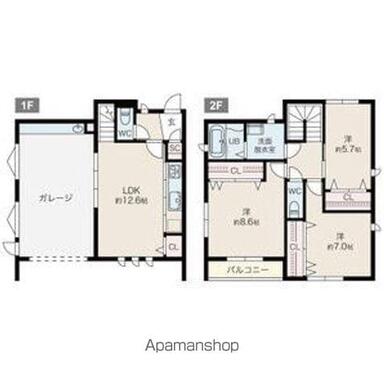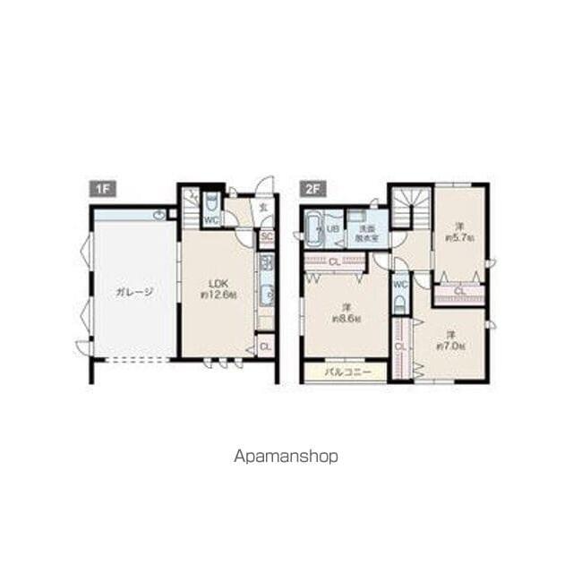 3LDK(LDK12.6 洋8.6 洋7 洋5.7) |